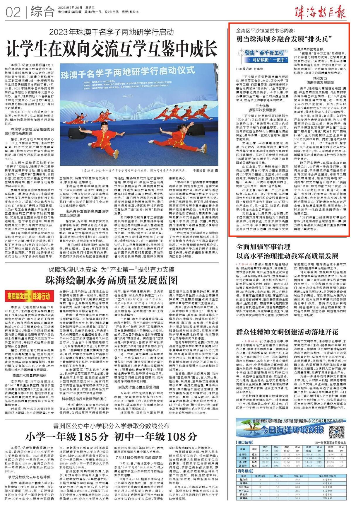 “平沙镇始终坚持高质量发展路线,积极落实省委、市委、区委关于‘百千万工程’的部署要求,当好珠海城乡融合发展试点‘排头兵’。”金湾区平沙镇党委书记周波表示。今年以来,平沙镇作为全市唯一省级城乡融合发展试点,在各项工作中取得亮眼成绩。