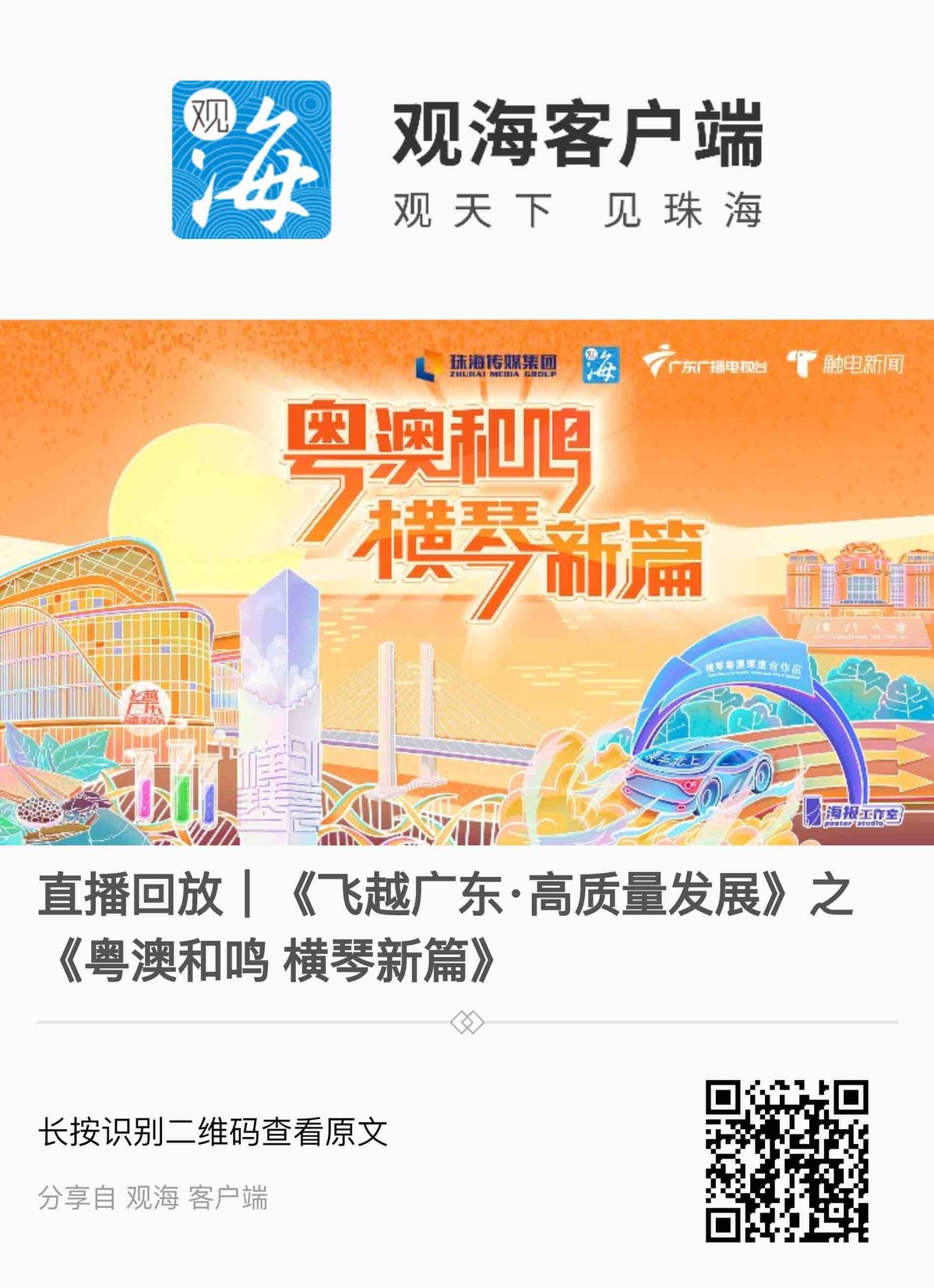 粤澳和鸣,琴声跃动。双向奔赴,比翼齐飞。由广东广播电视台制作的大型融媒系列直播节目,“飞越广东”第六季第三期《粤澳和鸣 横琴新篇》今日播出。时长一小时的节目,为大家展现横琴粤澳深度合作区高质量发展的新画卷!