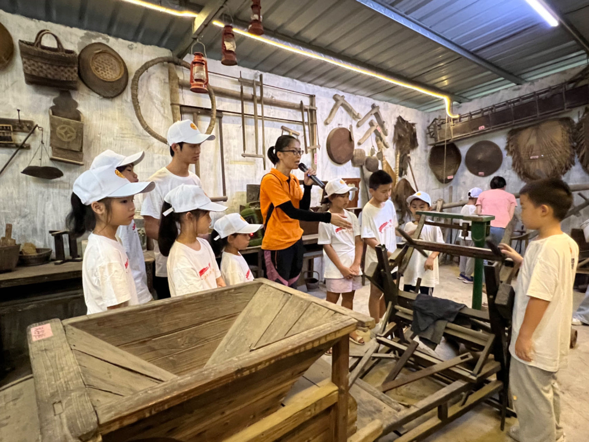 在劳模的带领下,产业工人和子女来到中山市南朗镇大车村露营拓展基地,体验农耕乐趣,参观农耕文化馆,感受中国传统农耕文化魅力,感悟体会今天的美好幸福生活来之不易。