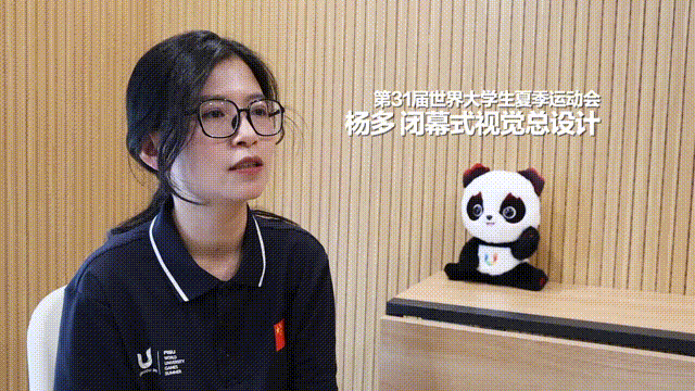 整场闭幕式表演中,裸眼3D“蓉宝”惊艳亮相。“我们在舞台上打造了带折角关系的裸眼立体演绎空间。利用裸眼立体结构让三组不同形象的‘蓉宝’‘跳’出屏幕。”成都大运会闭幕式视觉总设计杨多举例说,“一组是外披青衣纹路、头戴说唱耳麦的‘蓉宝’,一组是头戴陶俑小帽的‘蓉宝’,还有头戴赛博朋克头盔的‘蓉宝’。”