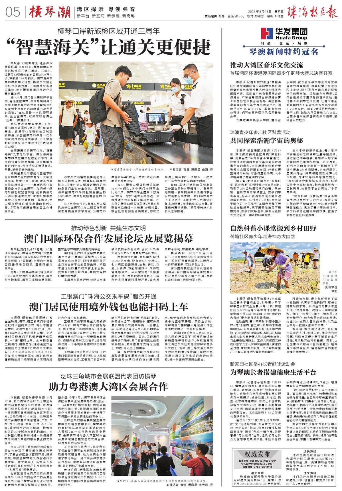 8月18日,横琴口岸新旅检区域迎来开通三周年。三年来,经横琴口岸通关的旅客超2700万人次,车辆超370万辆次。横琴海关聚焦口岸数字化转型,持续加大智能化科技创新力度,不断提升旅客通关体验,助力横琴粤澳深度合作区高质量发展。