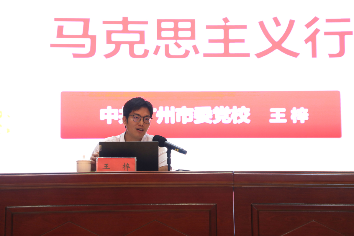 开班仪式后,中共广州市委党校(行政学院)政治学与法学教研部副教授王梓作主题为《马克思主义行》的专题教学。
