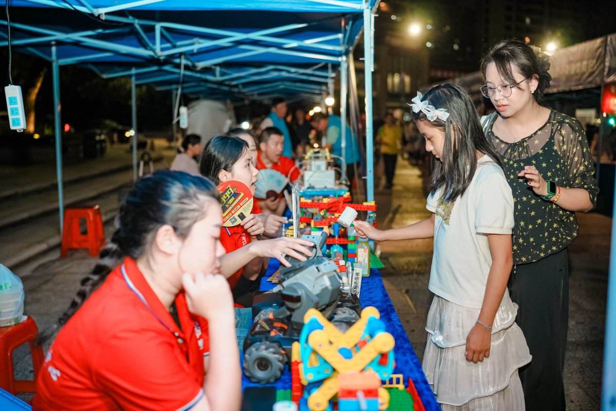 这是记者在2023年珠海市全国科普日主场活动现场看到的一幕。9月23日晚,由珠海市科协、珠海市科技创新局联合主办的2023年珠海市全国科普日主场活动在香山湖公园三期广场举行。这场“科普夜市”设立了80多个摊位,丰富多彩的科普活动吸引了众多市民参与。