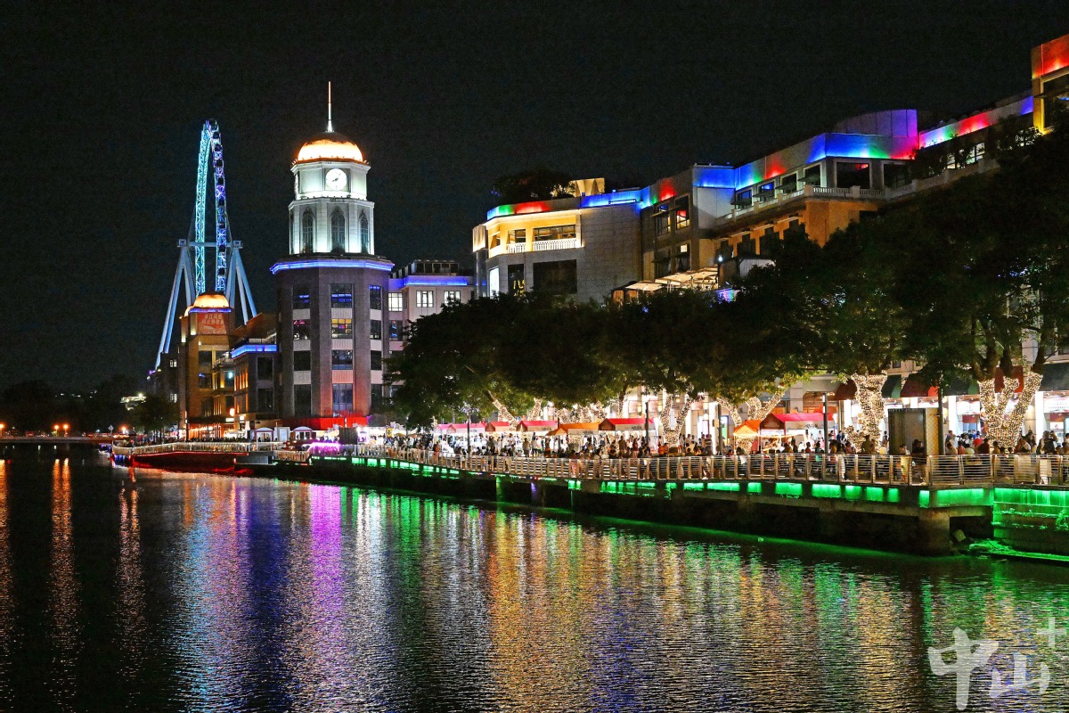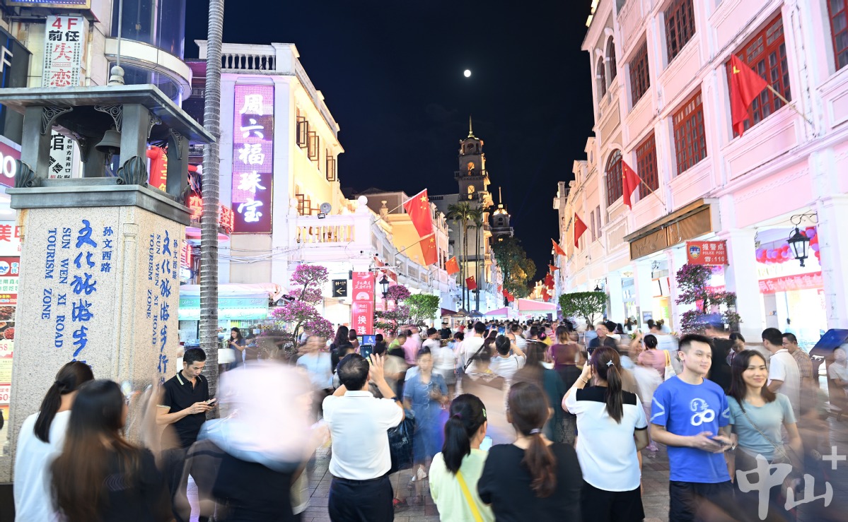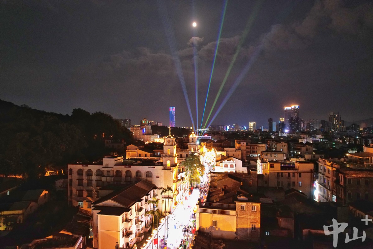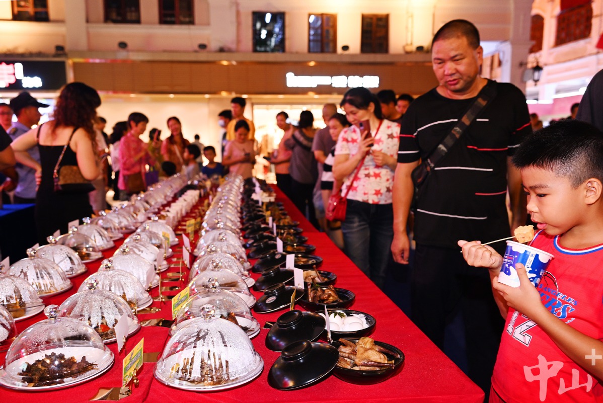 此时的兴中广场华灯上,孙文西路步行街的骑楼老街上,参加文化美食周的人流如织。岐江流水缀繁星,美食美景满欢欣。