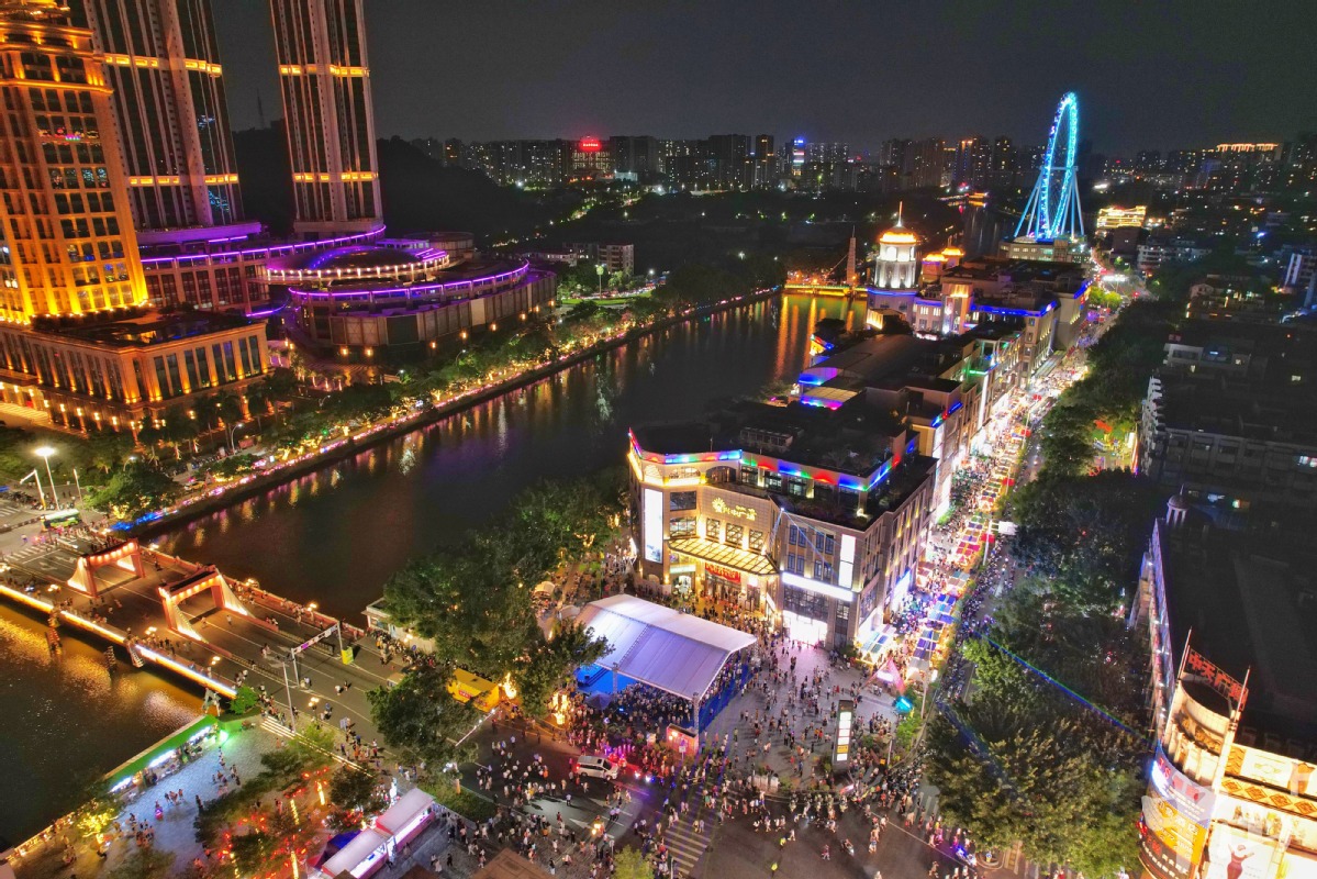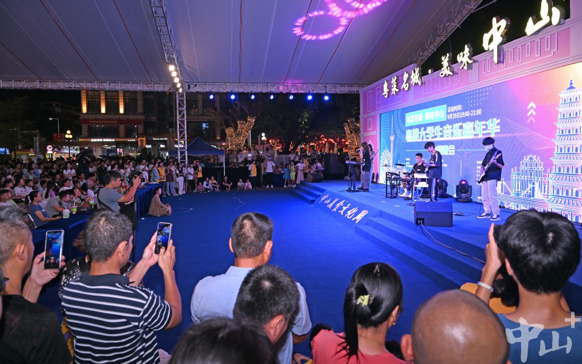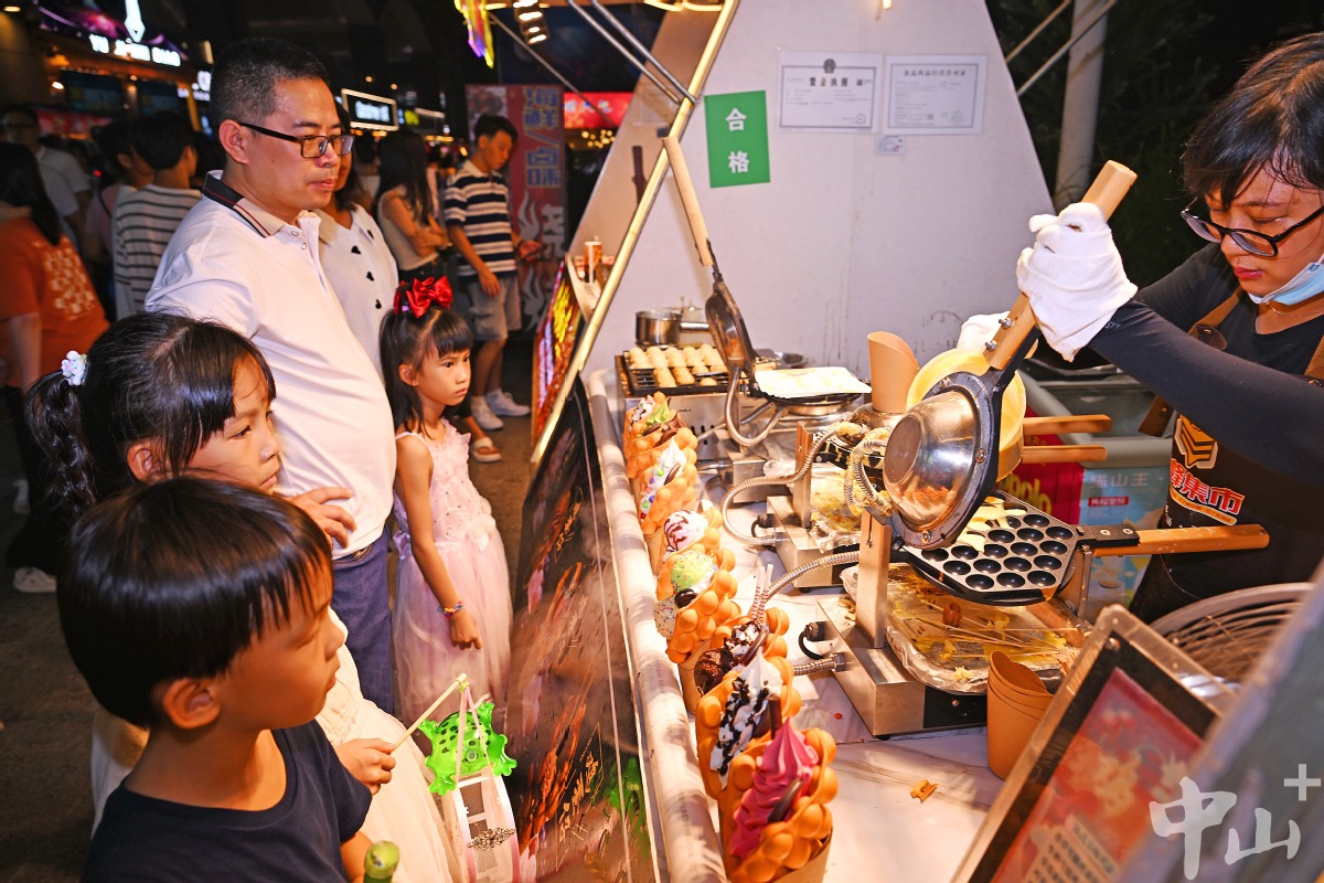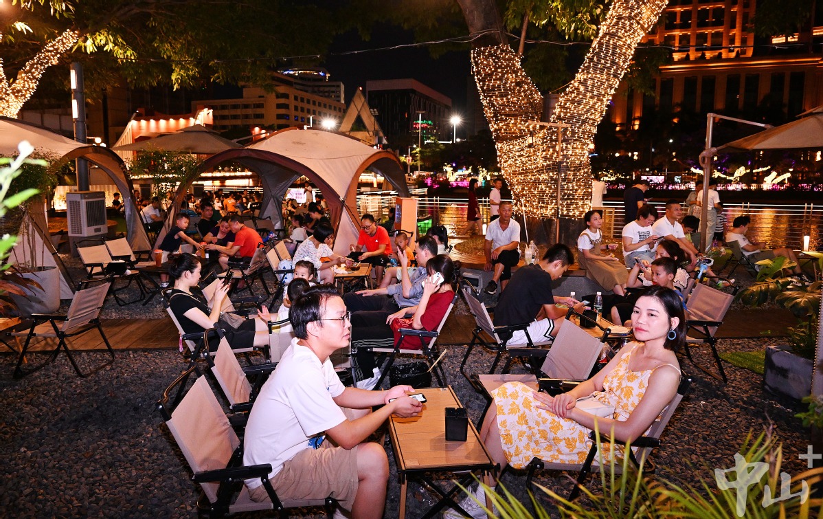此时的兴中广场华灯上,孙文西路步行街的骑楼老街上,参加文化美食周的人流如织。岐江流水缀繁星,美食美景满欢欣。