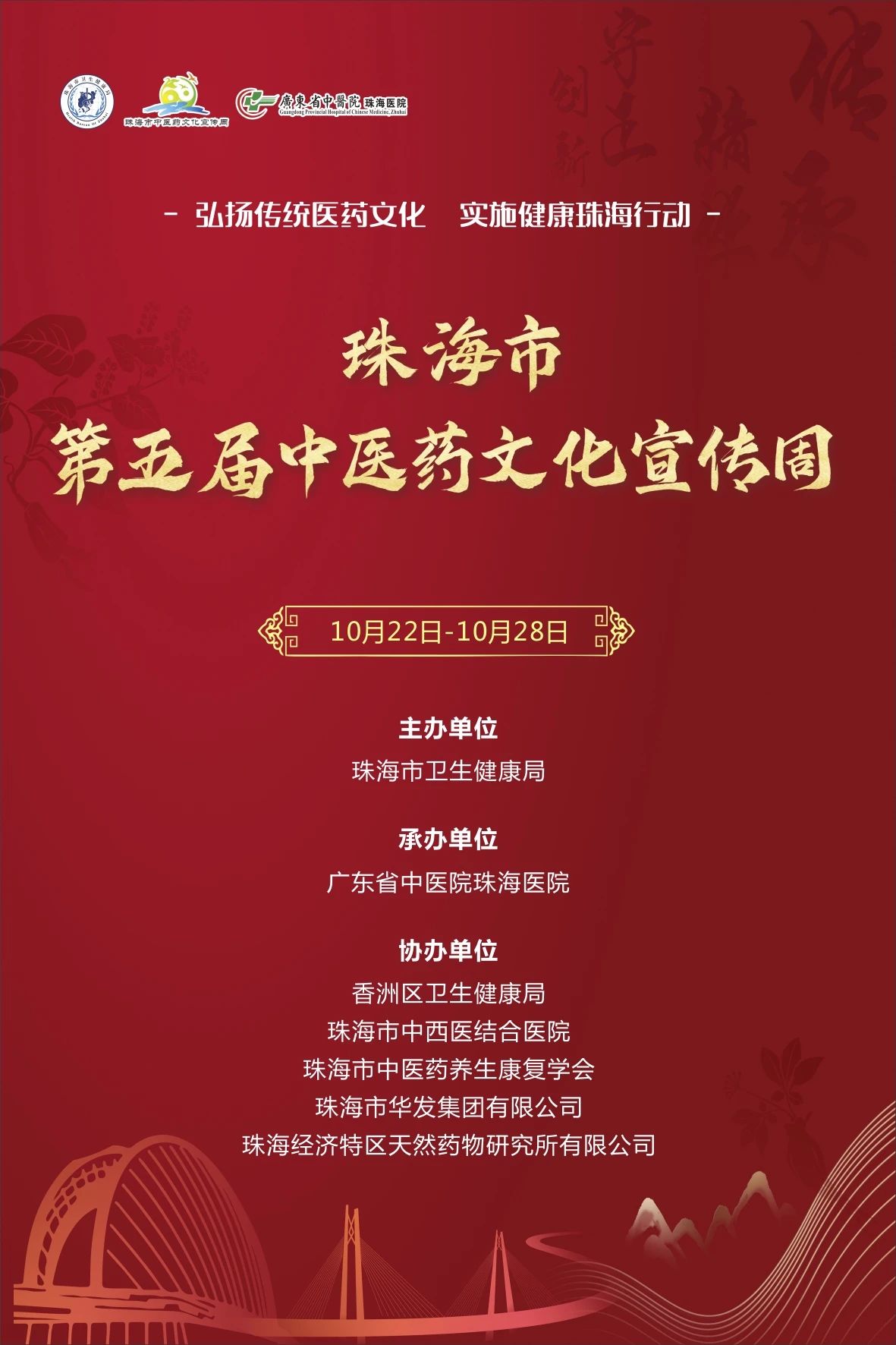 10月22日上午,为期一周的珠海市第五届中医药文化宣传周将盛大开幕。多位省市级名中医将为珠海市民免费义诊,还有中医学术传承拜师活动、丰富的中医药文化宣传内容展示、多种中医适宜技术体验、非物质文化遗产传承项目展示与体验、名中医与市民面对面交流沙龙等丰富多彩的活动供市民参与!