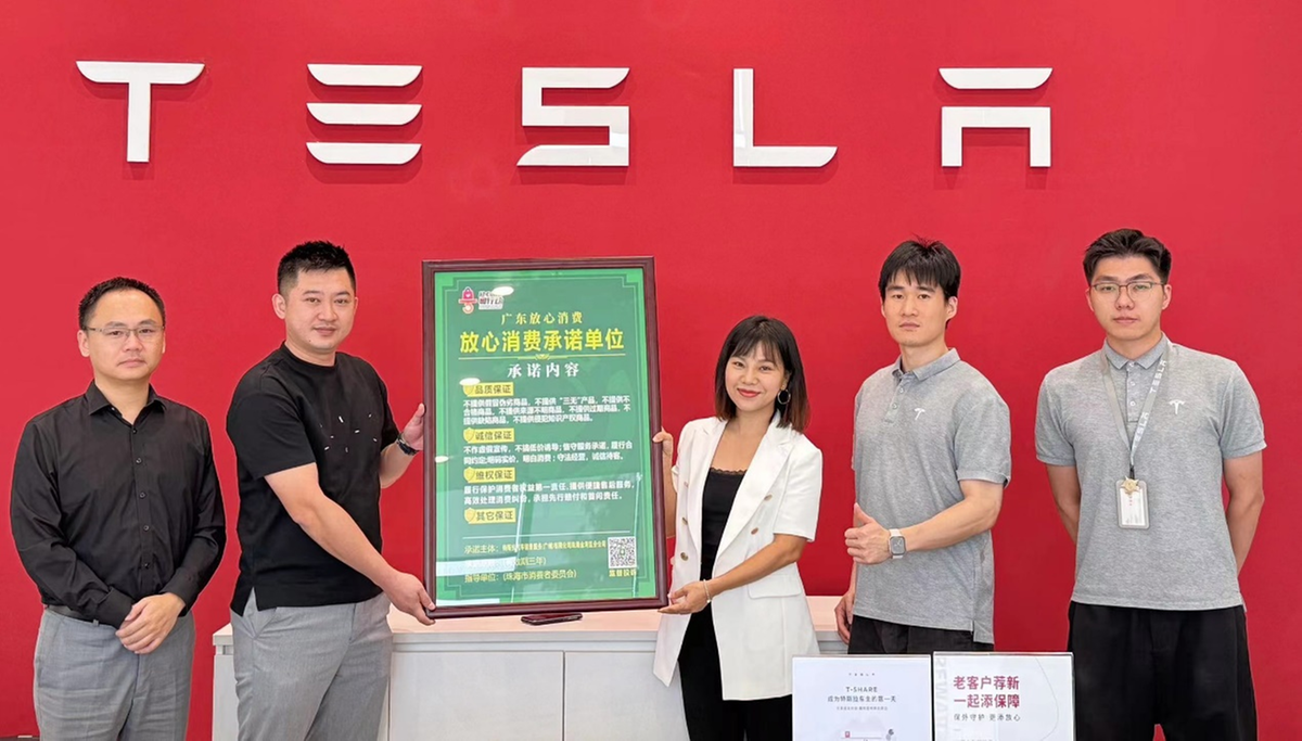 经珠海市消委会审核,10月17日,特斯拉金湾中心正式挂牌美满车城首家放心消费承诺单位。珠海特斯拉金湾中心承诺,继续为珠海车主带来数字化、智能化的交付体验,用行动诠释特斯拉的企业责任与社会责任,为市民消费者提供更安心的服务保障。