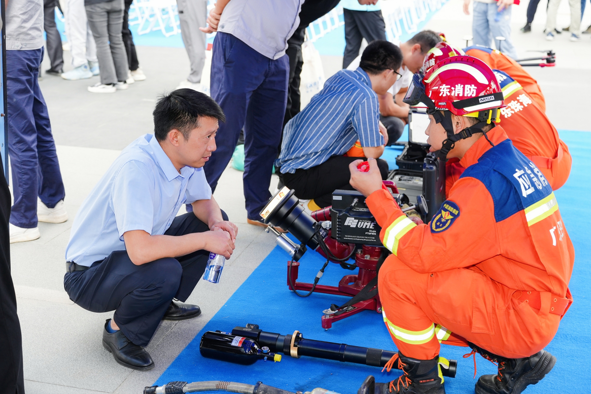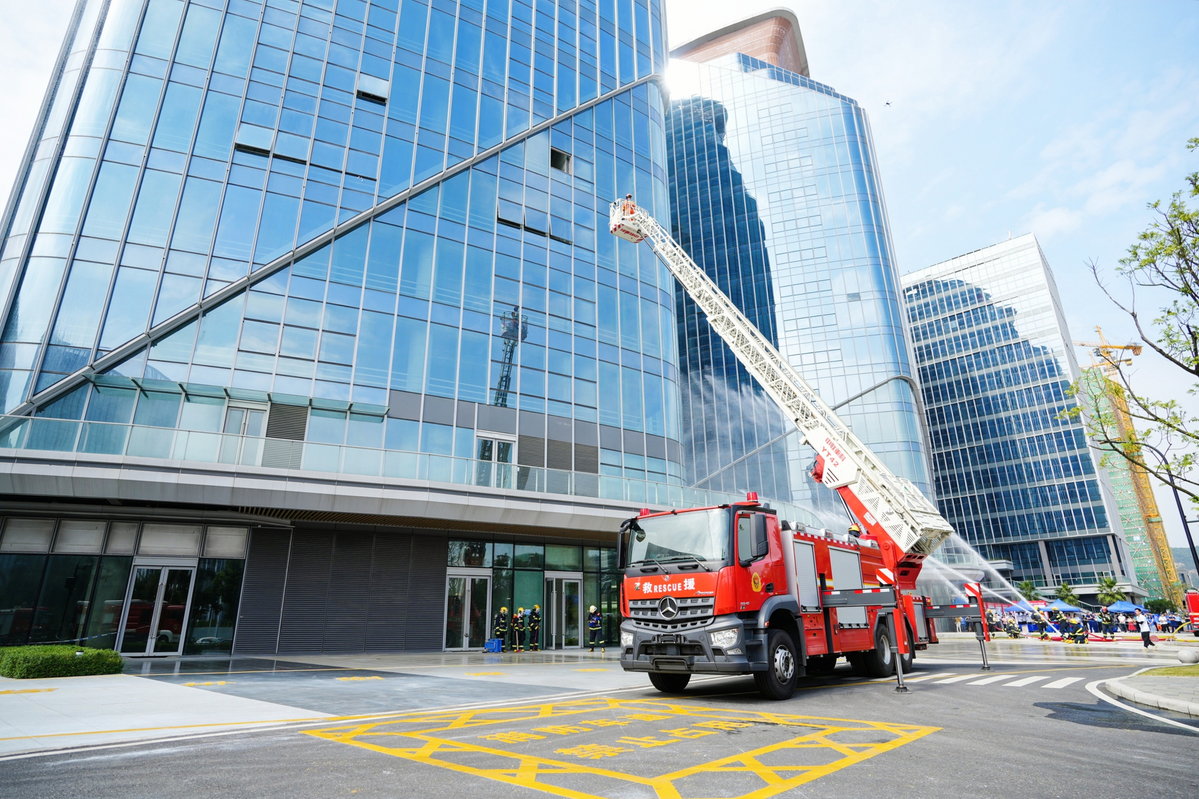 在应急救援演练环节中,通过模拟华发中以国际产业园A3栋5楼因电线短路引发起火,实地还原高层建筑火灾救援现场,考验了高新区消防救援队伍应对建筑复杂环境应急处置能力,提高了消防救援人员灭火救援作战能力和队伍的协作水平,更提升了市民消防安全意识。