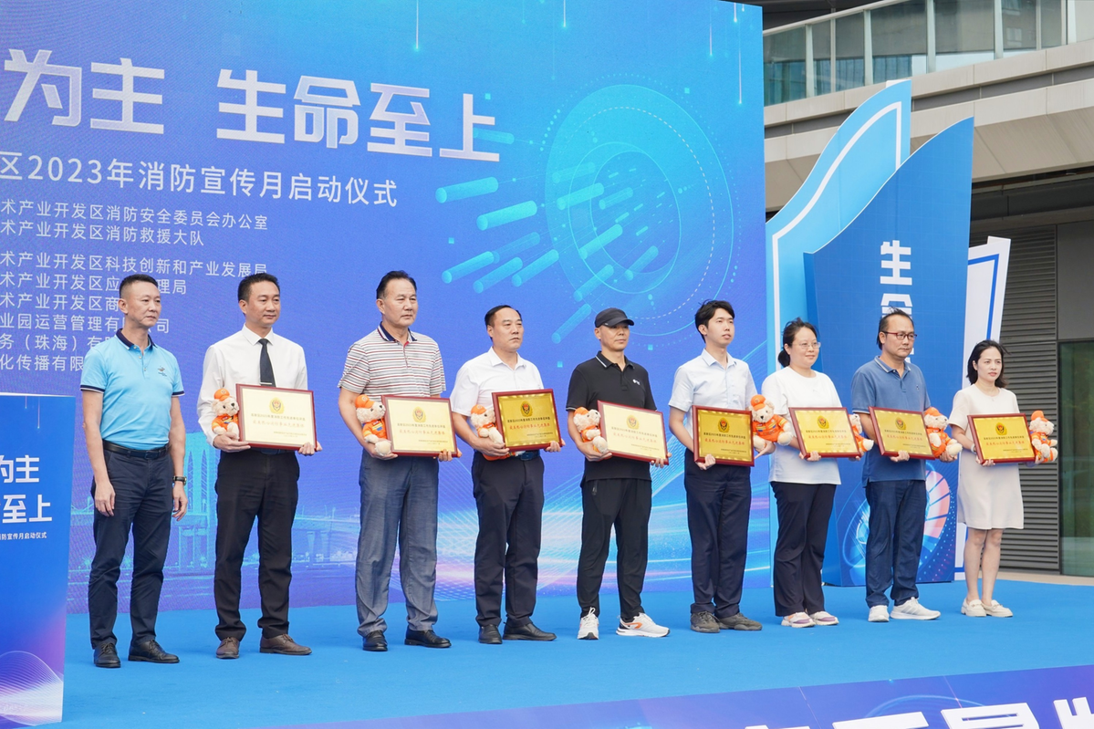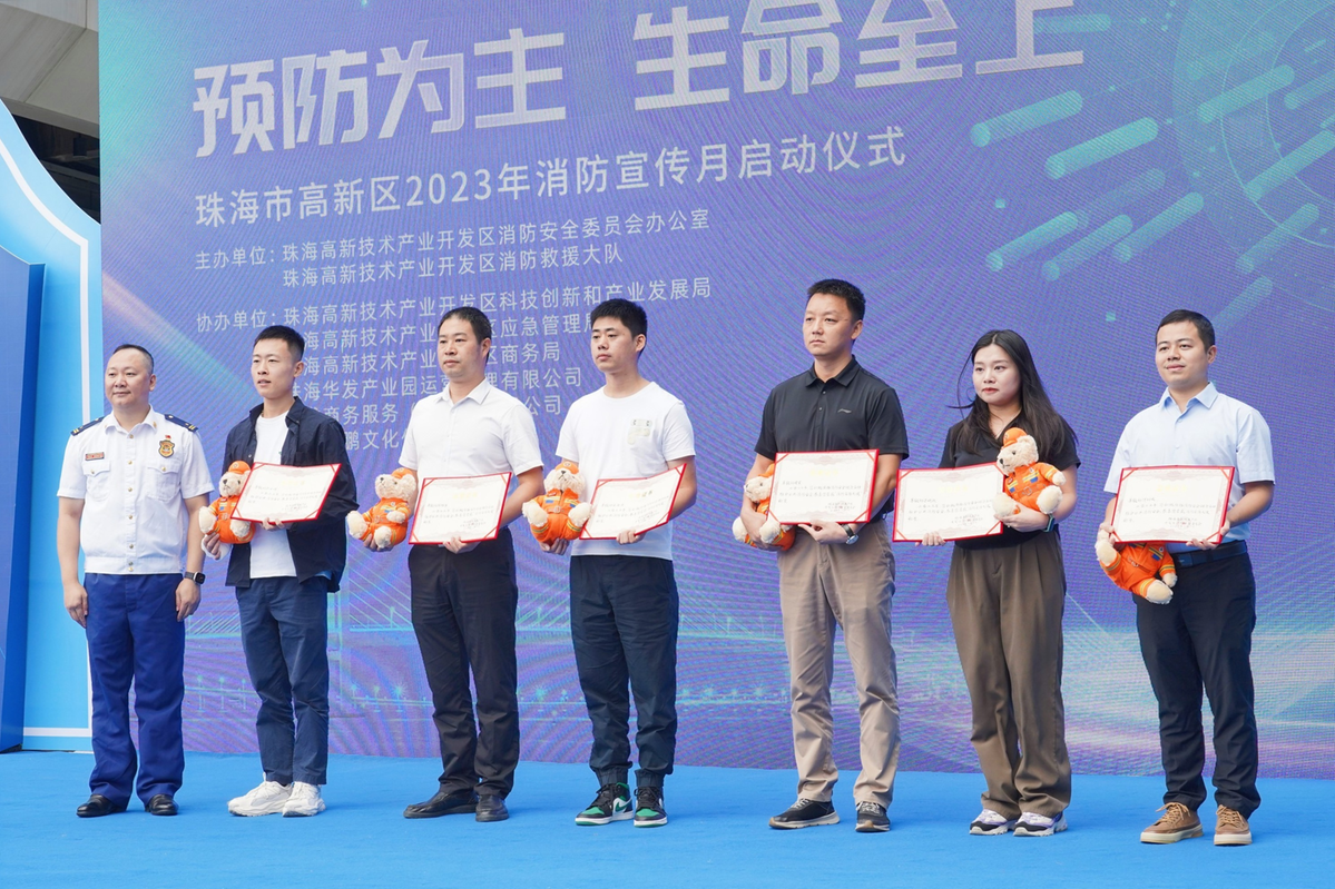 颁奖环节中,领导宣读了2023年高新区消防事业先进集体及个人名单,对“最美热心消防事业先进集体”“最美热心消防事业先进个人”“消防宣传大使”“消防安全宣讲师”“社区消防先进工作者”的获奖集体和个人进行了表彰并颁奖。