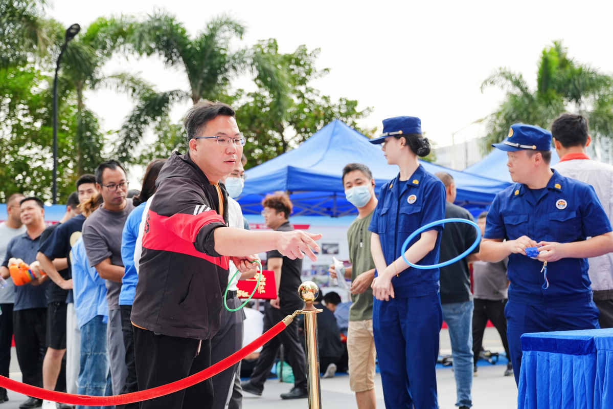 本次活动现场布置了消防器材装备展示、警示案例展示、“沙包灭火大作战”等互动体验区供大家玩乐,项目集竞争性、趣味性、健身性、教育性于一体,将防火、灭火、逃生自救常识融入到比赛各个环节之中,让广大群众在“玩”“乐”之中学习消防知识,掌握灭火逃生技能。