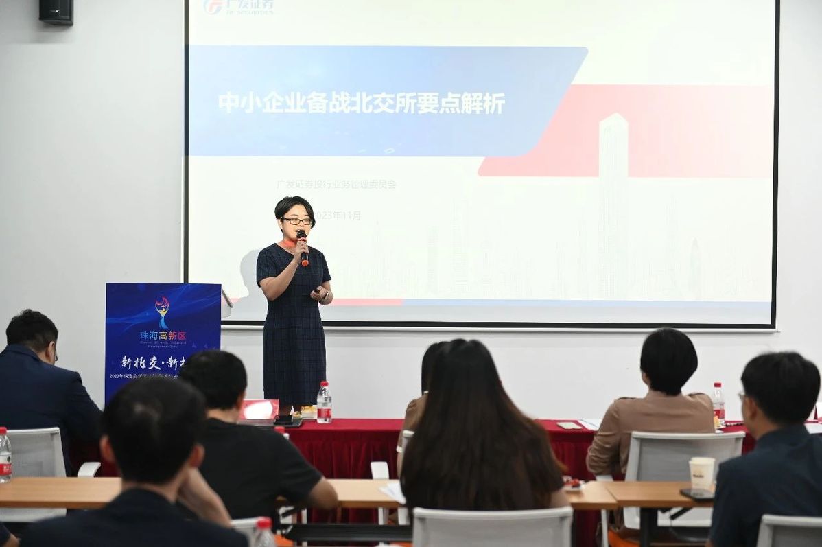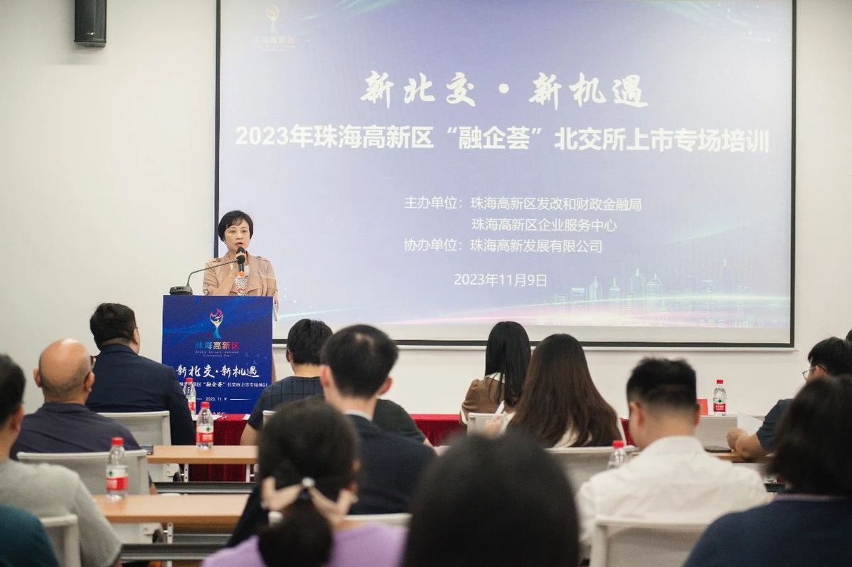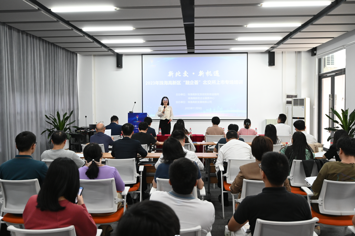 为帮助企业加深对“北交所深改19条”内容的了解,把握资本市场改革发展新动向,11月9日,珠海高新区发展改革和财政金融局、高新区企业服务中心联合举办了“融企荟”系列活动——“新北交·新机遇”北交所上市专场培训。活动特邀北交所、广发证券等专家授课、分享,吸引了区内英格尔、万力达、瓦特电力等20多家企业参加。