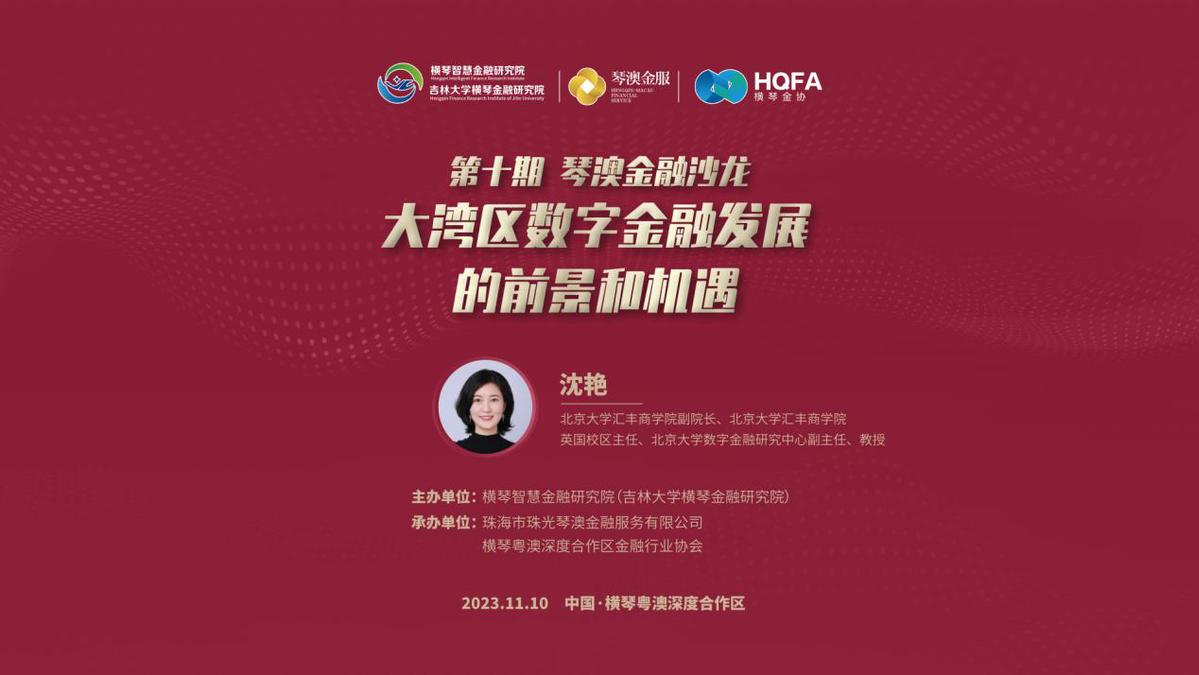 11月10日,第十期“琴澳金融沙龙”线上活动举办。本次沙龙的主题为“大湾区数字金融发展的前景和机遇”,由横琴智慧金融研究院(吉林大学横琴金融研究院)主办,珠海市珠光琴澳金融服务有限公司和横琴粤澳深度合作区金融行业协会承办。本次沙龙邀请北京大学国家发展研究院教授、数字金融研究中心副主任沈艳进行主题演讲。