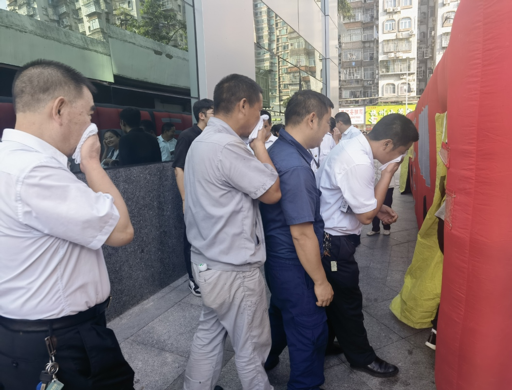 11月10日下午,拱北街道联安社区的华发商贸大楼“火情”警铃突然响起,大楼广播随即播放:“大家请注意,本楼三层茶水间突发火情,请大家不要害怕,就近拿湿毛巾捂住口鼻,迅速有序从楼梯撤离到广场。”该楼内一百多个正在上班的员工听到喇叭播报后,迅速反应,纷纷用衣服、毛巾捂住口鼻,遵循现场疏散专员的引导,从安全通道紧急撤离。3分钟后,100多人全部撤离完成。