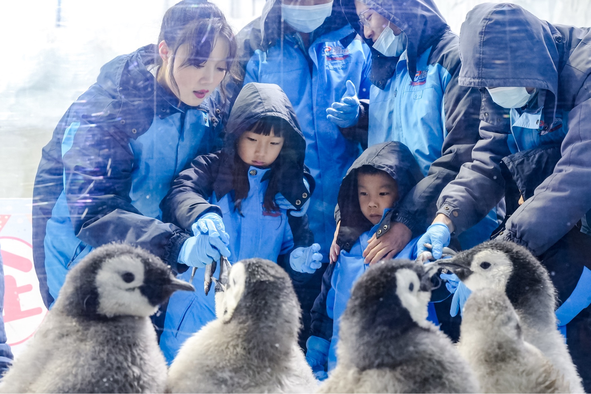 据乐园企鹅保育专家介绍,现在帝企鹅们将陆续进入退绒换羽阶段,后期它们身上的稚绒会慢慢褪去“换”上第一身防水羽毛,到了12月中下旬就会“穿”上“燕尾服”,掌握游泳、上岸等技能,进而成功融入种群中。横琴长隆海洋王国长期致力于动物保育和环境保护工作,为帝企鹅在国内低纬度地区饲养、孵化、繁育、科研等积累了丰富的经验,为保护生物多样性作出积极贡献。