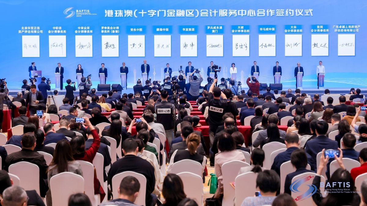 大会开幕式现场,还举行了港珠澳(十字门金融区)会计服务中心、港珠澳(十字门金融区)法律服务中心合作签约仪式。