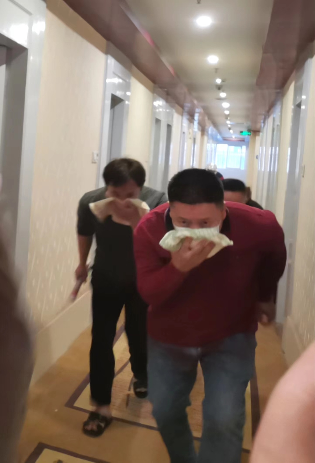 当天的活动中,先由教官讲解消防安全常识、消防装备器材使用技巧及逃生要领等基础知识。接着,演练正式开始,模拟辖区内某酒店房间发现火情,值班人员到达现场查看后立刻拨打119报警,然后逐一拍打各房间,通知住客迅速撤离,并根据火势情况就近取灭火器进行初期火灾扑救;同时启动消防应急预案,在最短的时间内组织人员有序、快速地撤离到应急疏散集合地。