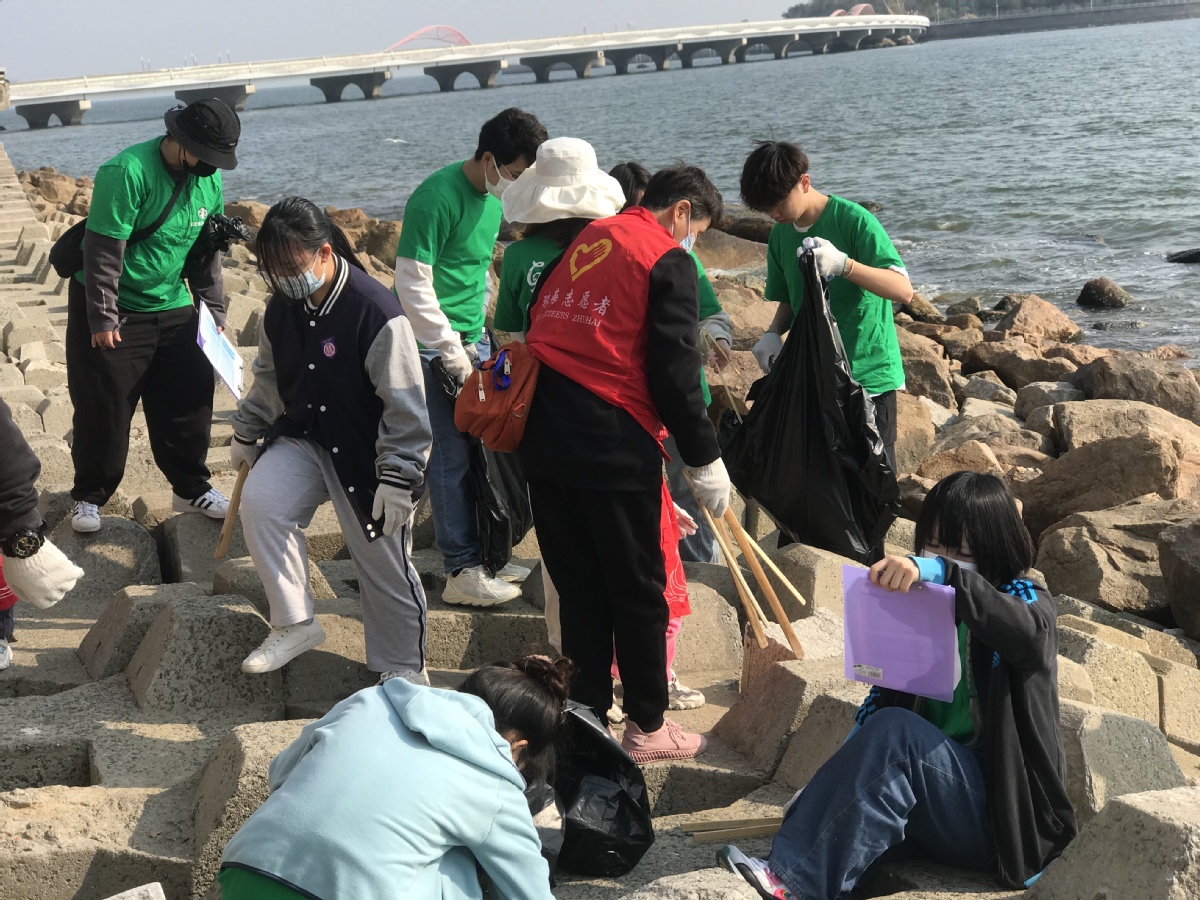 活动当天,天气晴好,亲子志愿者热情高涨。一抹抹“志愿红”与“生态绿”交相辉映,家长和孩子们踊跃参与“净滩”环保志愿行动。他们三五成群、手持垃圾钳沿着海岸线一路“寻宝”,有的还俯下身子在石缝中徒手“抓宝”……经过一个多小时的奋战,亲子志愿者们共清理了5大袋各类垃圾,还海滩一片洁净。