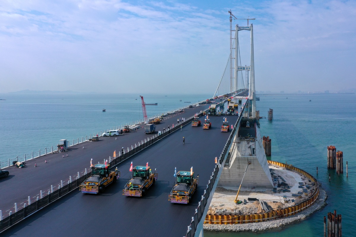 据了解,热拌环氧沥青铺装对施工技术和精细化控制要求极高,可以更好地适应深中通道外海多变的气候条件及高盐高温的环境,全面提升钢桥面铺装质量。