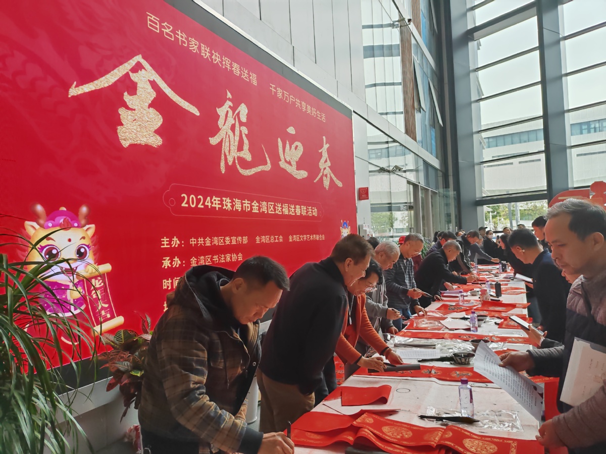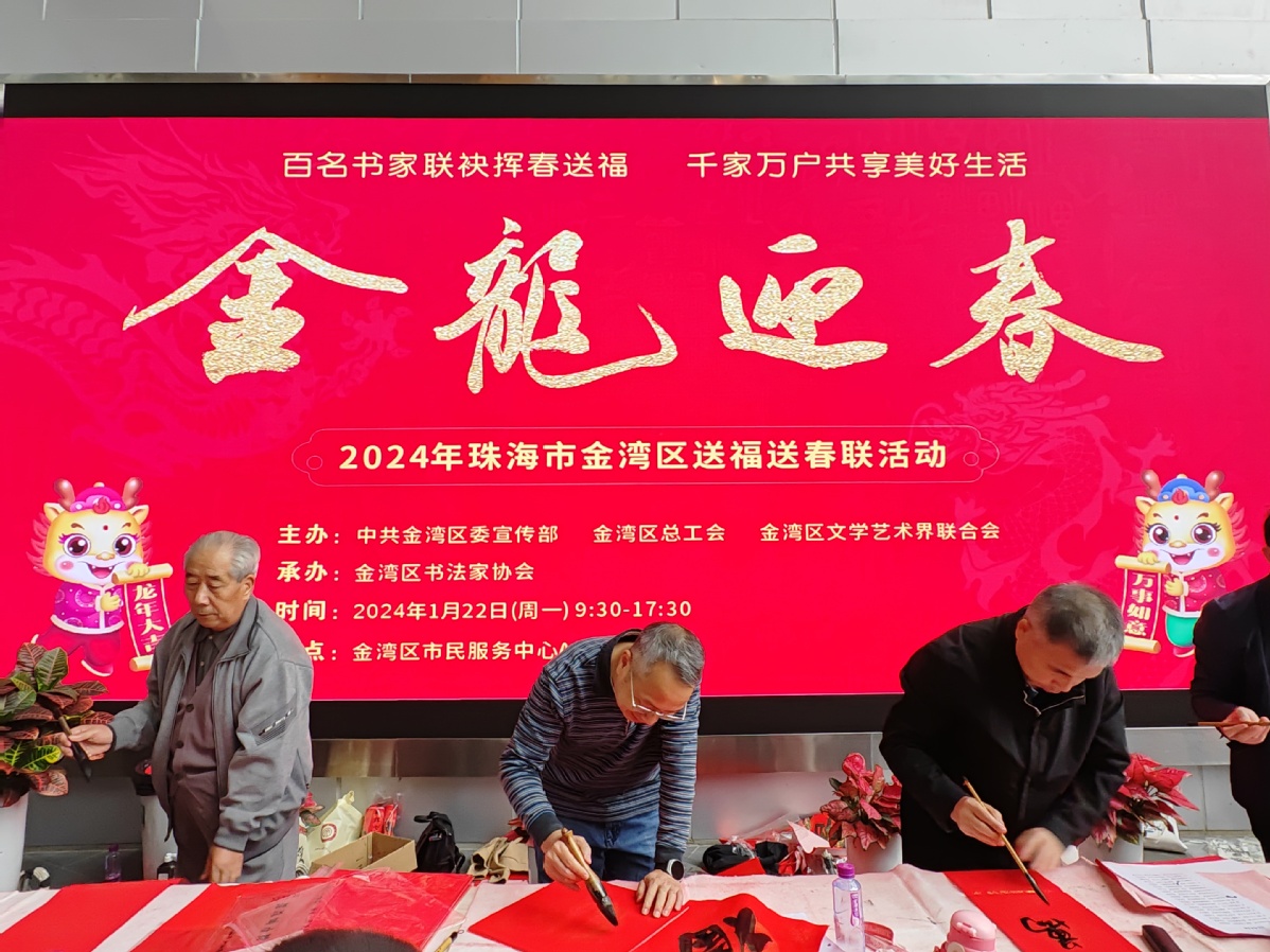 农历新年的脚步越来越近,1月22日,金龙迎春2024年珠海市金湾区送福送春联活动走进金湾区市民服务中心。书法家们现场给市民撰写春联送祝福。