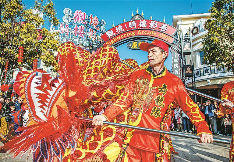 汉服秀、高甲戏,赏花灯、看舞龙……正月里的厦门,多姿多彩的民俗活动为市民游客送上了一道道精美的文化大餐,给甲辰龙年的新春佳节增添了浓浓的传统年味。