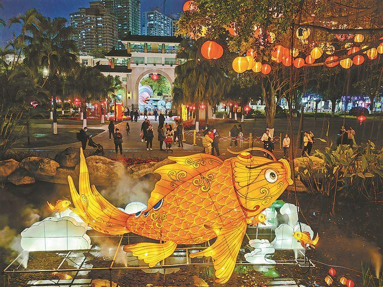 园博苑内,特色鲜明的骑楼建筑、丰富多彩的生活情景体验街区,让人流连忘返。随着舞龙等表演登场,这里更加热闹非凡。