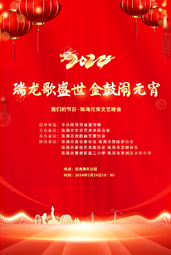 本次活动由中共珠海市委宣传部指导,珠海市文学艺术界联合会主办,珠海市戏剧曲艺家协会承办,珠海市摄影家协会、珠海市音乐家协会、珠海市舞蹈家协会、珠海市影视艺术家协会、珠海市龙狮协会、珠海市香洲区第三小学、珠海市香洲区北岭小学协办。