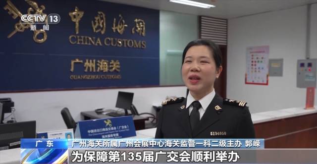 广州海关所属广州会展中心海关监管一科二级主办 郭嵘:为保障第135届广交会顺利举办,我们在业务现场设立广交会服务专窗,全天候接受参展企业预约通关,优先办理申报、查验、抽样、检测等手续。同时在广州白云国际机场、琶洲港澳客运码头开辟“广交会来宾便捷通道”,保障广交会进出境人员、展品便捷通关。