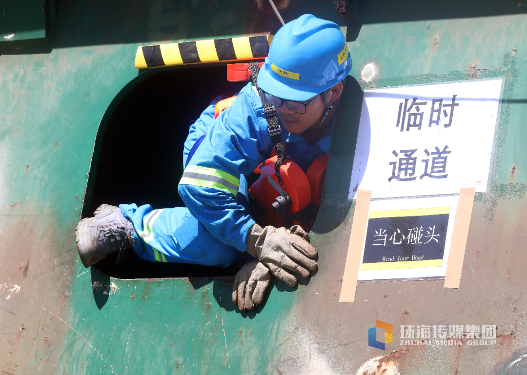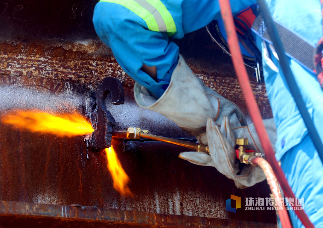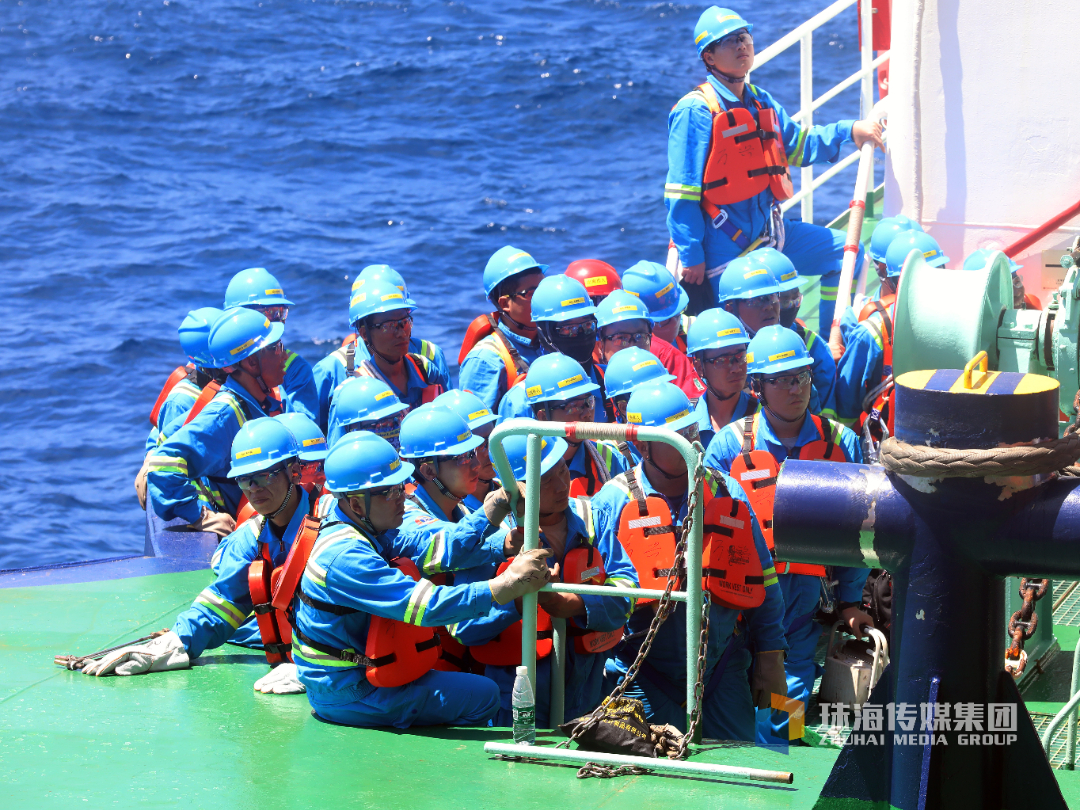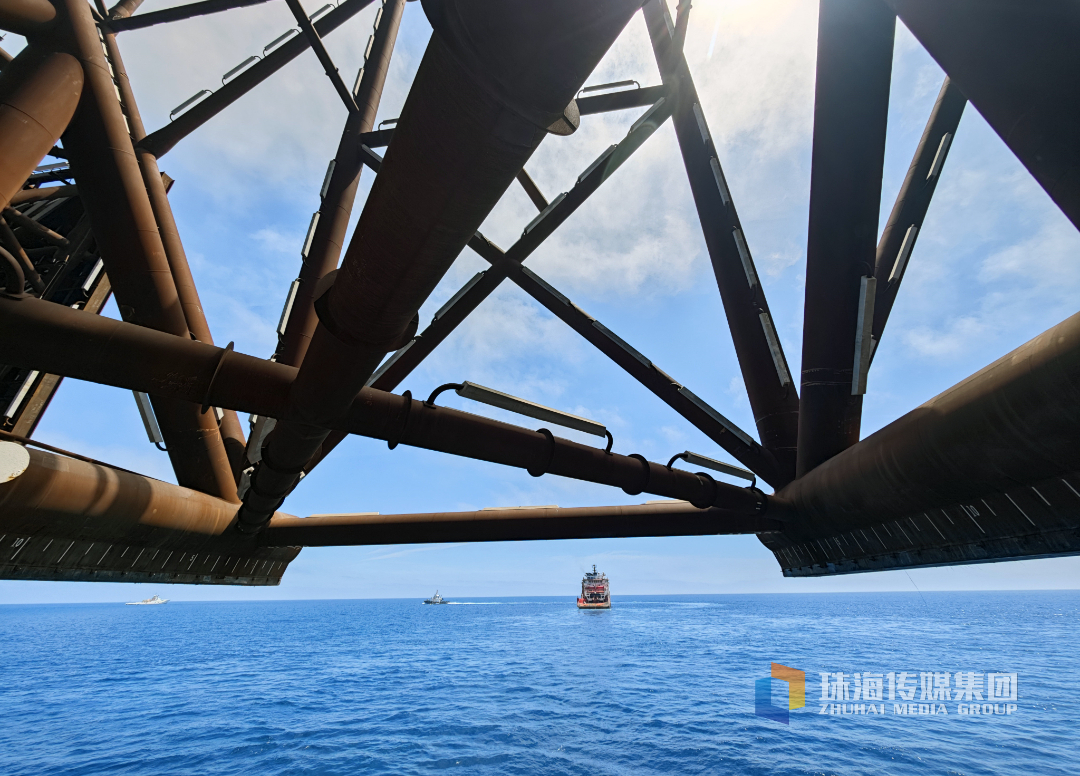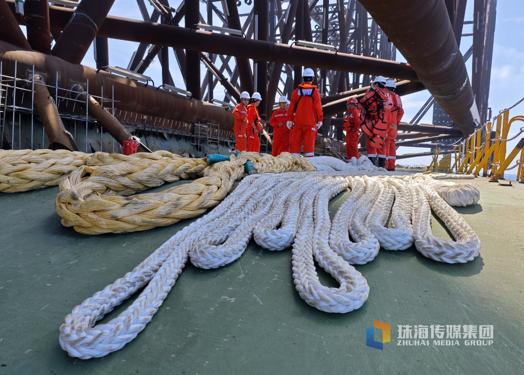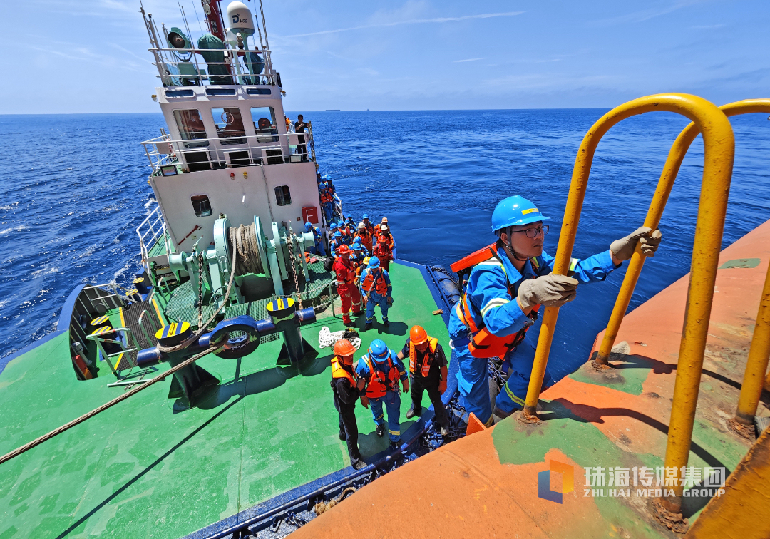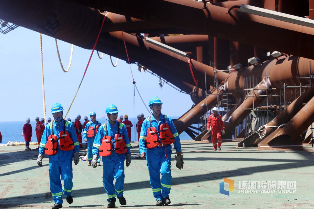 3月24日,70多名施工人员坐船前往导管架作业海域。