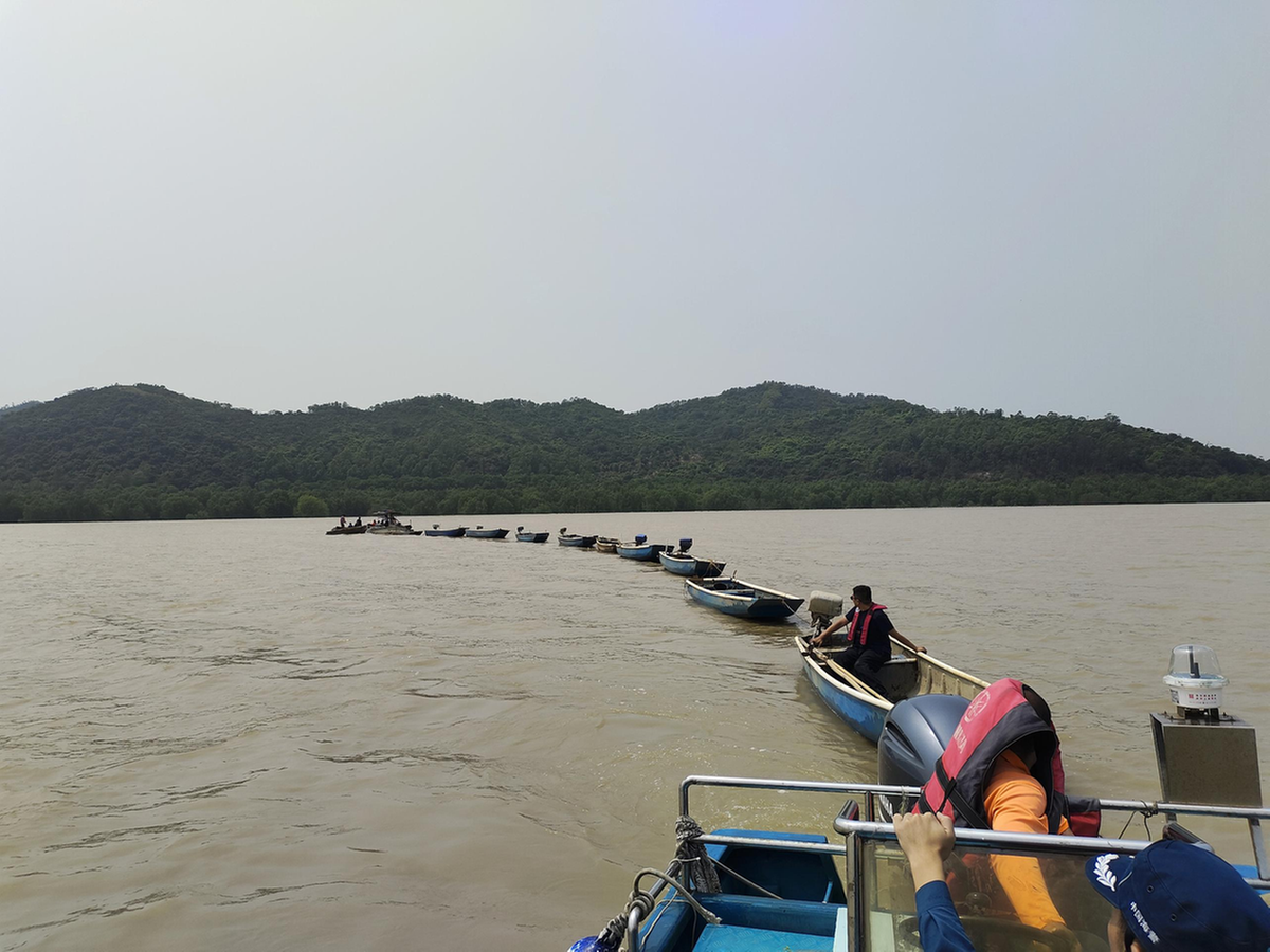 4月11日,高新大队联合广东珠海淇澳担杆岛省级自然保护区管理处、市公安局森林分局、珠海海警局香洲工作站等单位,共出动执法工作人员25人,执法艇2艘、辅助船5艘,分3组混编登船,对应3个涌口方向展开行动,共查扣涉渔“三无”船舶34艘。