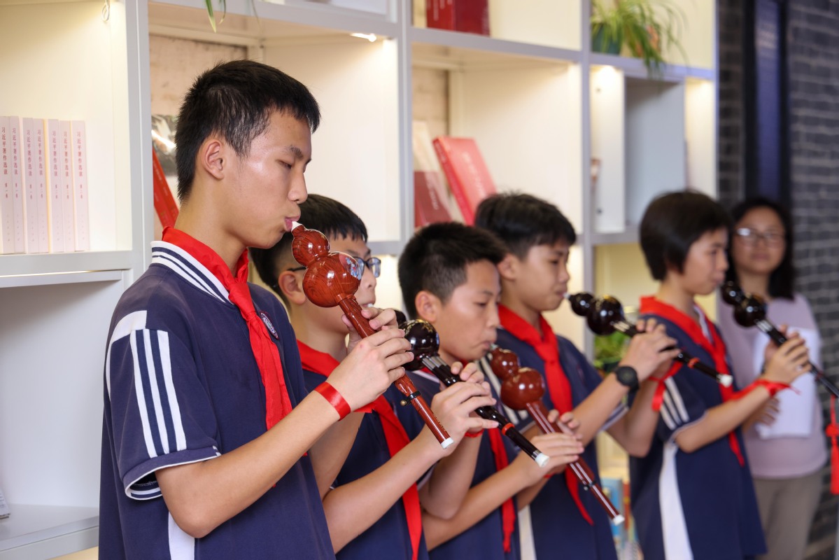 为欢迎澳门广大中学师生的到来,城东中学学子精心准备,表演了《龙的传人》《我和你》等葫芦丝演奏,以及《谁是最可爱的人》朗诵表演,展示该校教学特色。“澳门广大中学的同学们很热情、友善,希望能喜欢我们的表演,通过这次活动,我也学到了很多东西。”斗门区城东中学学生罗美麟表示。