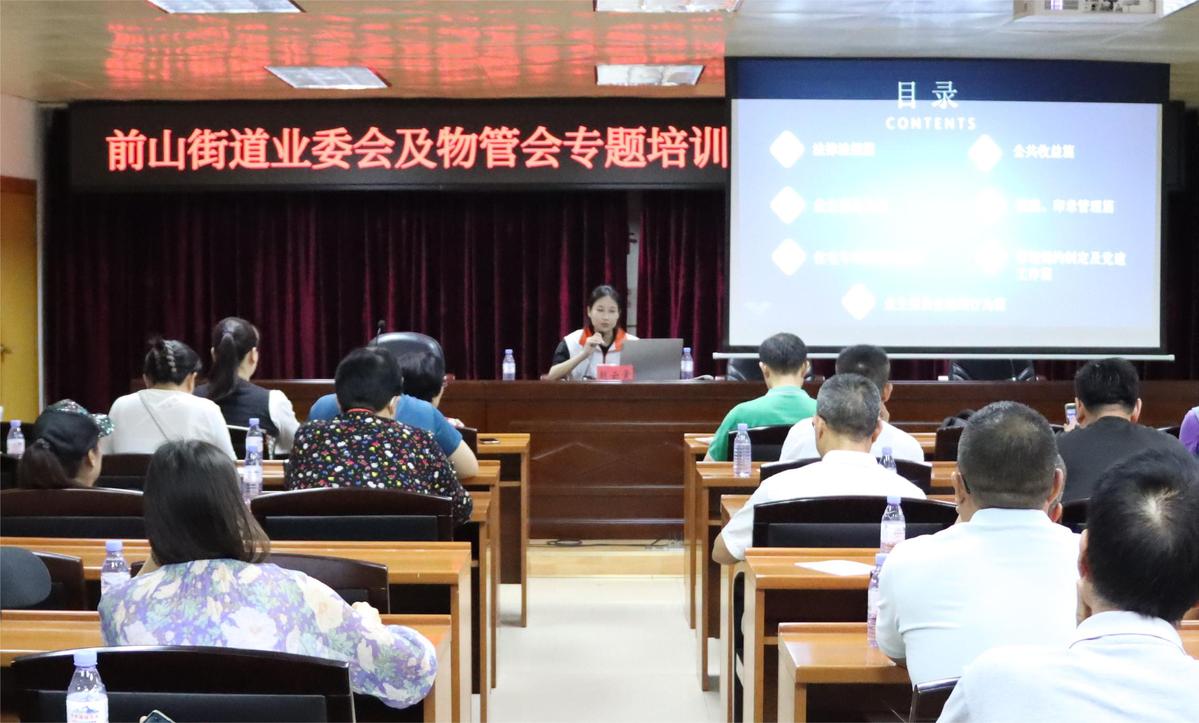 为进一步加强辖区业主委员会、物业管理委员会的建设,提升业主委员会政策法规水平和业务素质,增强履职能力,规范履职工作的开展,近日,前山街道开展2024年首场“业主委员会及物业管理委员会专题培训”,辖区各住宅小区业委会及物业管理委员会委员共50余人参加培训。