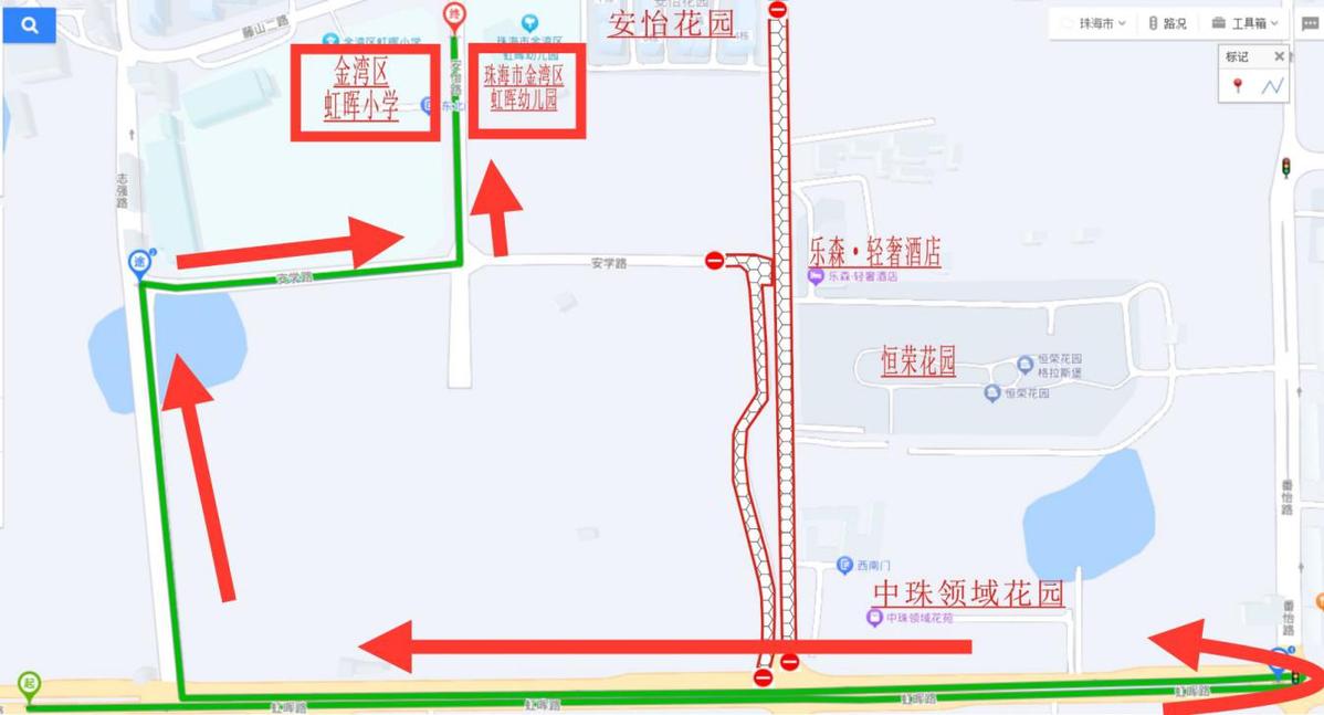 绕行路线:虹晖路三板社区方向→志强路→安学路→安怡路→虹晖小学(虹晖幼儿园)