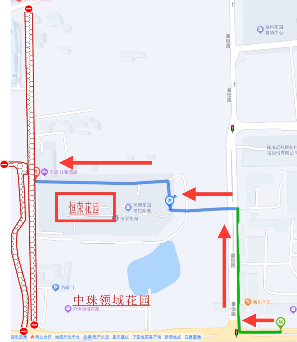 绕行路线:虹晖路(右转)→番怡路→恒荣花园(小区东门)
