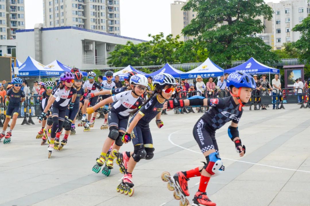 随着比赛哨声响起,大家期待已久的速度轮滑赛拉开帷幕。运动员们弯腰屈身,如离弦之箭一般冲出,加速、超越,在赛道上驭风滑行,你追我赶,奋力角逐。矫健的身姿、灵活的动作、为观众呈上一场精彩绝伦的轮滑盛宴。“加油!加油!冲!”看台上,观众们的呐喊声响彻广场。