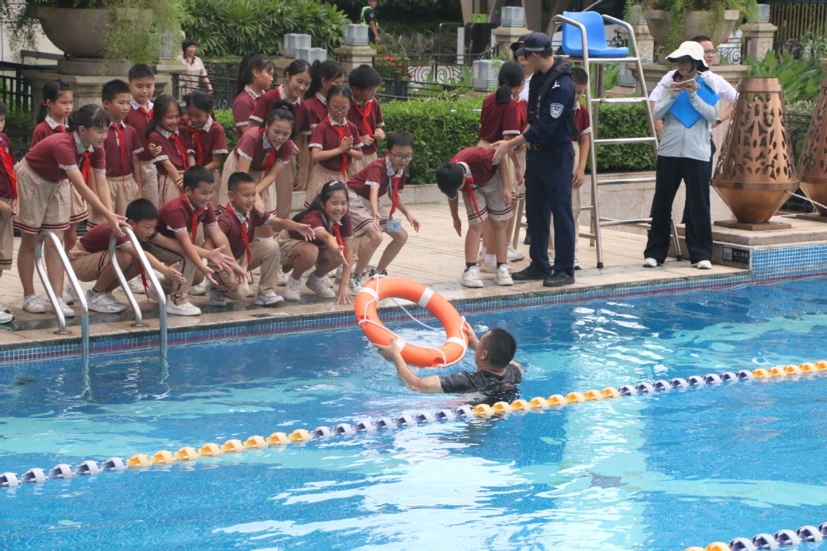 值得一提的是,面对面授课后,珠海市公安局水域治安管理支队三大队民警通过游泳池现场演示以及手把手互动的方式,向学生们示范了溺水时应当如何正确求救、互救和自救的方法和动作,告诫学生珍爱生命,远离危险水域。