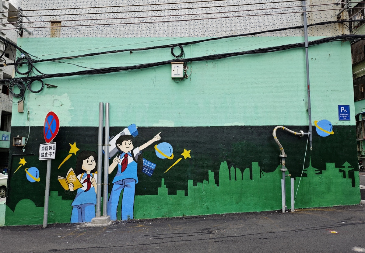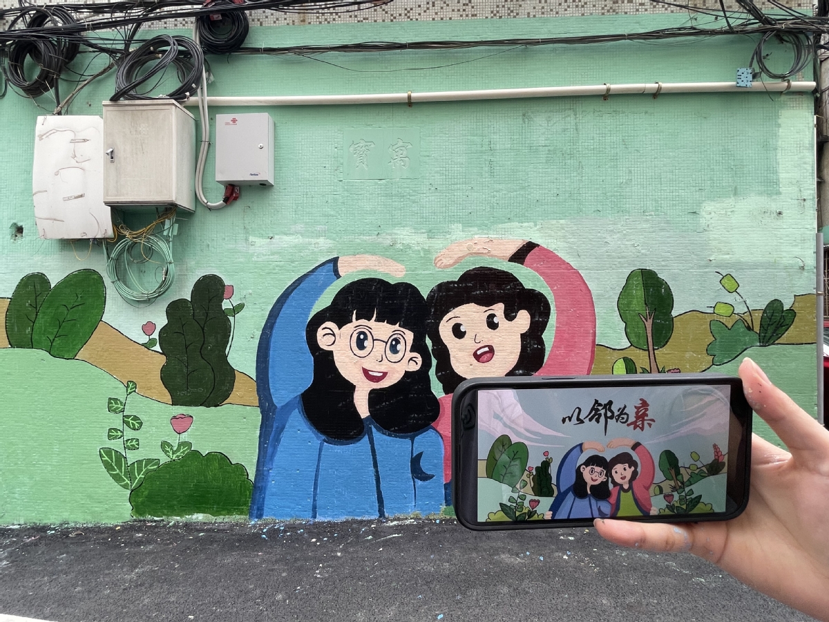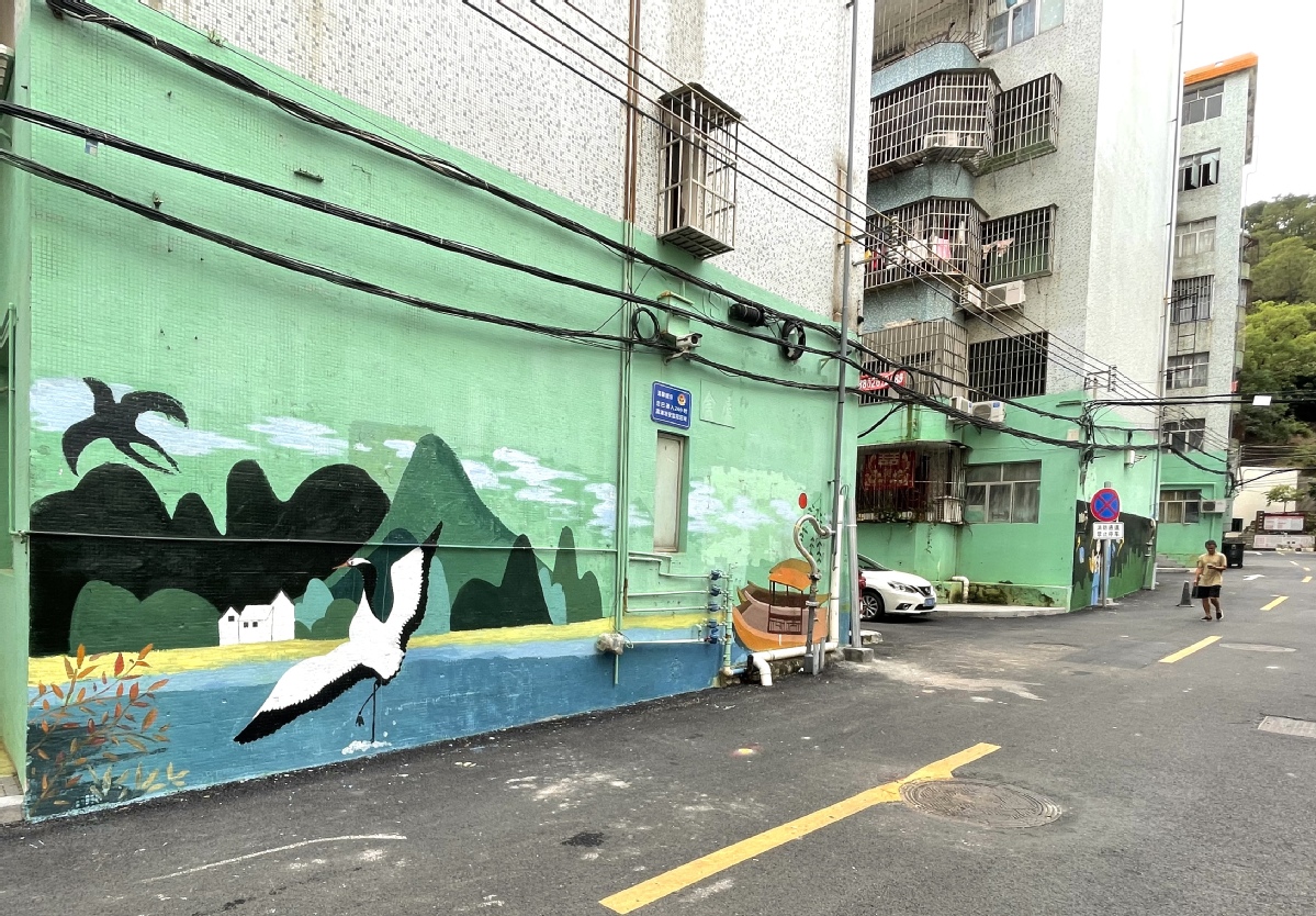 4幅构思巧妙、色彩绚丽、栩栩如生的墙绘作品,扮靓了居民区,引得过往居民纷纷驻足观看,连连称赞。