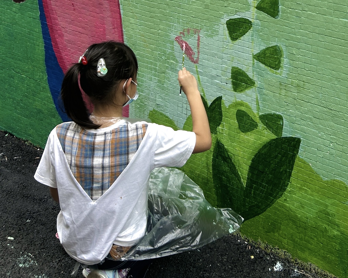 “这是我第一次在墙上画画,我感到十分有趣。”吴芷珊小朋友一边提着画笔勾勒线条,一边与小伙伴有说有笑,“你看,这是我画的,好看吧!”