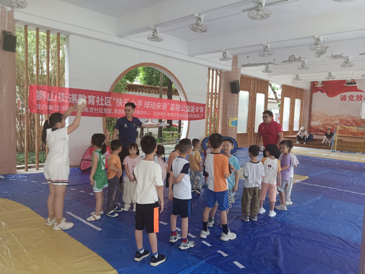 7月29日上午,狮山街道教育社区家庭教育指导服务中心,在香洲区第一小学低年级部开展“快乐小手•球动未来”首期公益夏令营活动,吸引20余名辖区青少年踊跃报名参加。