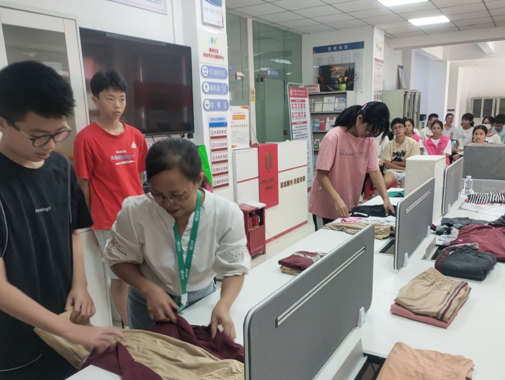 在老师的指导下,青少年们纷纷动手实践起来,他们认真地把衣服叠得整整齐齐、将物品进行分类整理,并运用所学到的技巧进行收纳,体会整洁环境带来的舒适和愉悦。