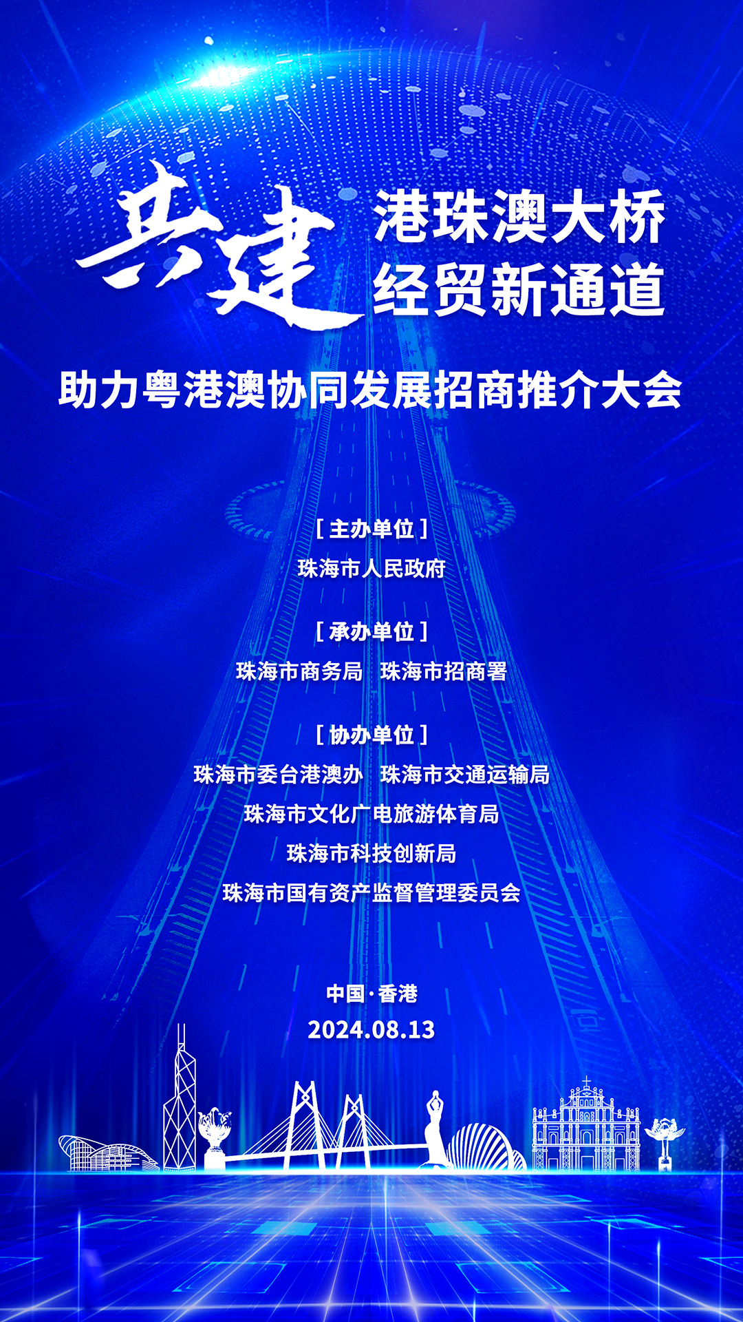为深入贯彻落实习近平总书记关于“用好管好大桥,为粤港澳大湾区建设发挥重要作用”重要指示精神,以及广东省委省政府有关工作部署,珠海市政府将于8月13日在香港亚洲国际博览馆举办“共建港珠澳大桥经贸新通道 助力粤港澳协同发展招商推介大会”。