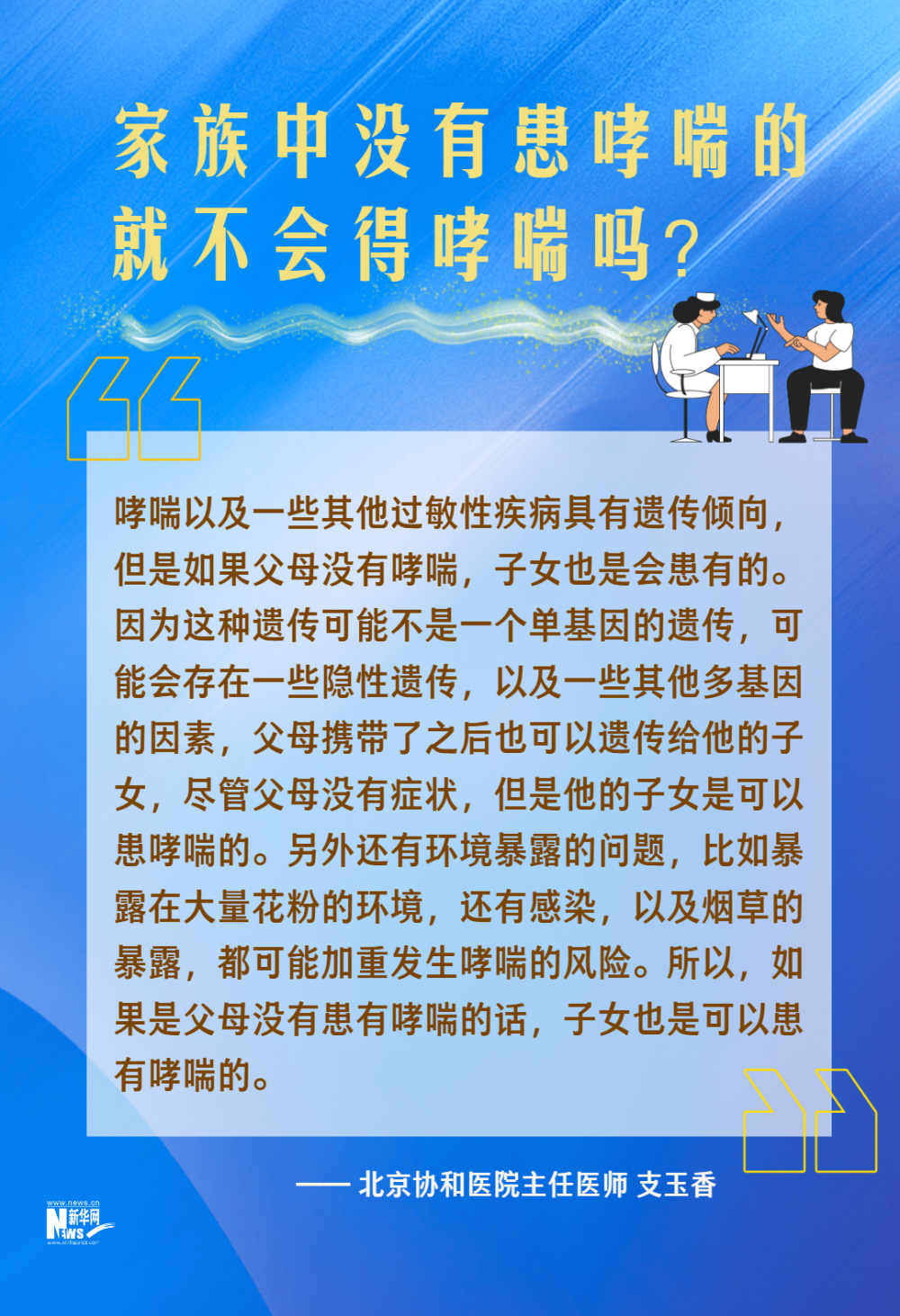 5月6日是第27个“世界防治哮喘日”。哮喘是一种常见的慢性炎症性气道疾病,影响全球超过2.6亿人。家族中没有患哮喘的就不会得哮喘吗?吸入激素治疗哮喘会成瘾吗?哮喘患者能怀孕吗?夏季到来哮喘患者如何做好健康管理?......关于哮喘的多个热点问题,国家卫健委近期组织专家进行了权威回应,一起了解。