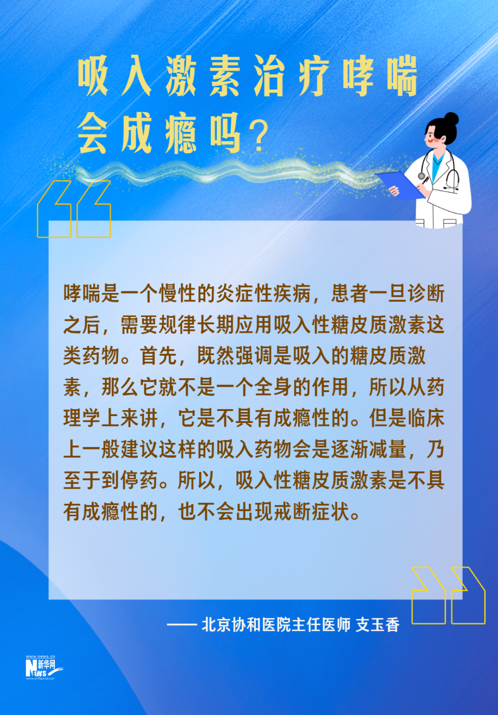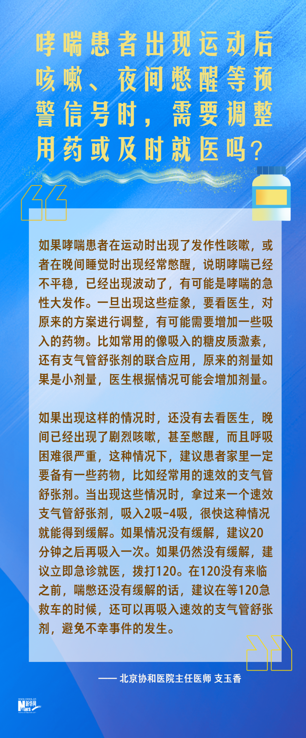 在我国,20岁及以上人群的哮喘患病率为4.2%,约有4570万哮喘患者。专家介绍,如果规范治疗,哮喘可以得到控制。但由于认识不足,超过80%的患者都因暂停用药而导致疾病失控。今年世界防治哮喘日的主题是“让吸入疗法惠及所有哮喘患者”,建议哮喘患者应尽量采用吸入治疗,药物可以直接进入到呼吸的气道,而对全身的副作用轻很多,吸入治疗是慢性气道疾病非常重要的一环。