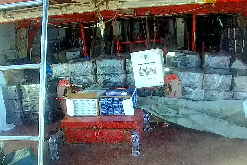 经过现场搜查甄别,执法艇在目标海域成功锁定一艘可疑船舶,执法员立即喊话示警,并将嫌疑船舶截停。随即,执法员登临嫌疑船只,在船舱中发现Manchester等国外品牌香烟,船上人员均无法提供船舶有效证件及该批香烟的合法来源证明单据。执法员依法将涉案船舶、人员及香烟带回做进一步调查处理。
